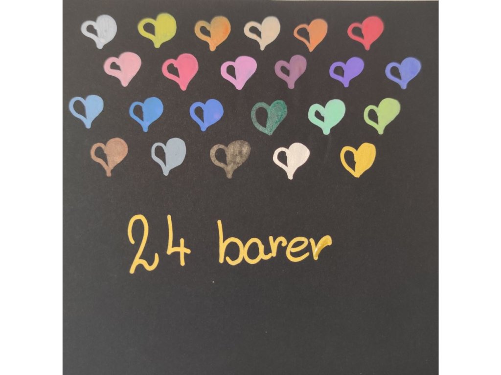 - Sada obsahuje 24 odstínů barev s metalickou zlatou a stříbrnou
