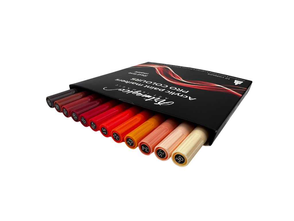 Akrylové fixy PRO LINE v červených odstínech s extra jemným hrotem o síle 0,7 mm s 12 matnými barvami určenými pro profesionály i amatérské umělce. Perfektní krycí vlastnosti a nádherné odstíny barev potěší každého milovníka barev.