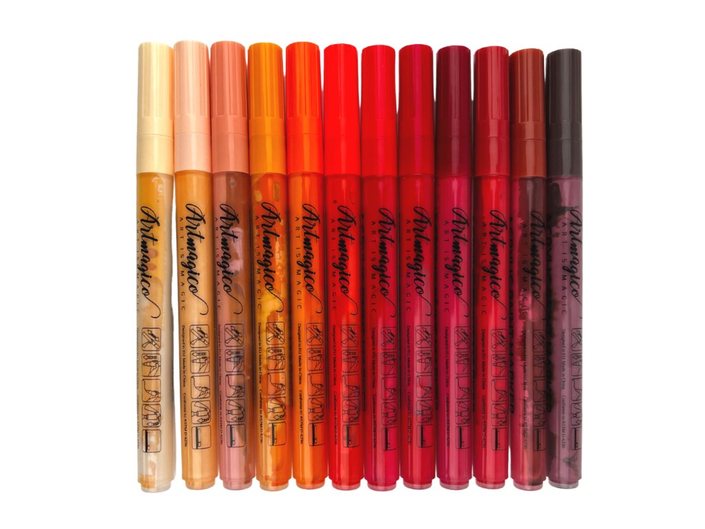 Akrylové popisovače obsahují inovativní inkoust na vodní bázi, jenž využijete na všechny typy povrchů. Fixy Artmagico zajišťují plynulý tok barvy, vysokou krycí schopnost a jasné a konzistentní barvy. V těle fixy najdete akrylovou barvu společně s pojivem, jejichž spojení je zajištěno kuličkou, která při štěrchání zajistí správnou konzistenci.