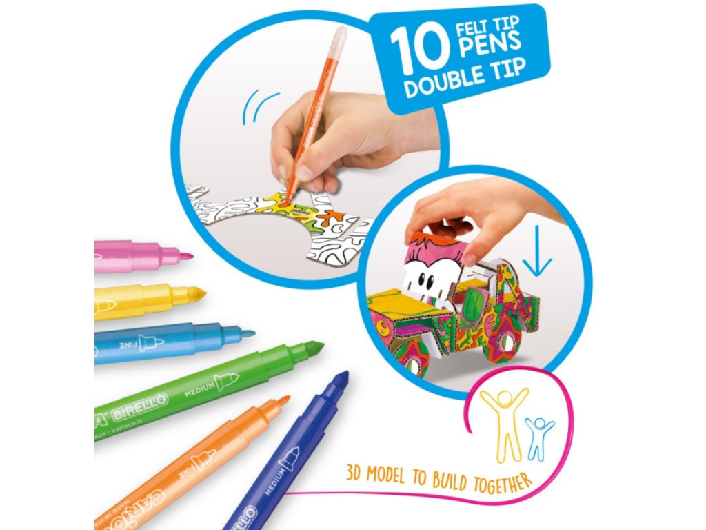- Obsah sady: 3D omalovánky ve tvaru auta a 10 barevných fixů