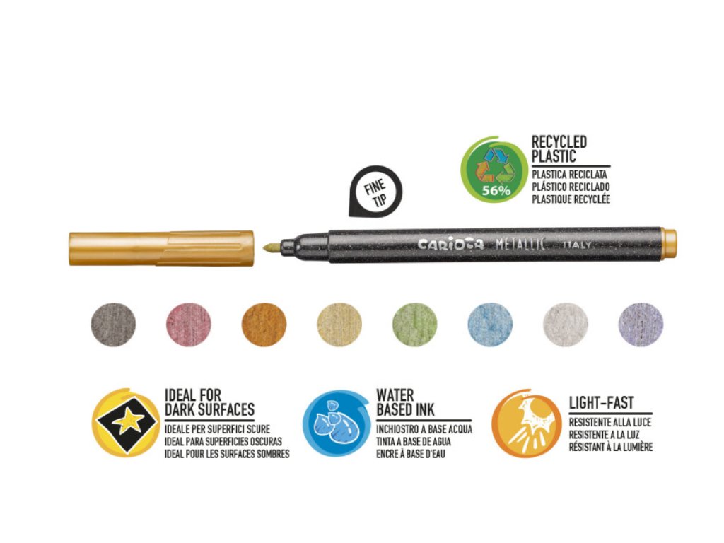 Bezpečné a netoxické složení zaručuje, že jsou fixy vhodné pro děti i dospělé. Kompaktní a snadno přenosná sada je ideální pro použití doma, ve škole nebo na cestách. Carioca Metallic fix s jemným hrotem je perfektní dárek pro každého, kdo miluje tvoření a chce přidat svým výtvorům zářivý a elegantní nádech.
