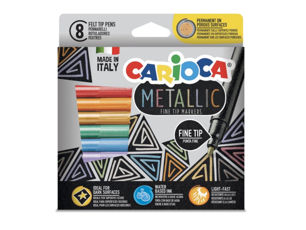 Objevte kouzlo metalických odstínů s Carioca Metallic fix s jemným hrotem! Tato sada obsahuje 8 jemných fixů v různých metalických barvách, které přidají vašim kresbám, psaní a designům unikátní lesk. Ideální pro všechny věkové kategorie, perfektní pro detailní práce, scrapbooking, kaligrafii a další kreativní projekty.