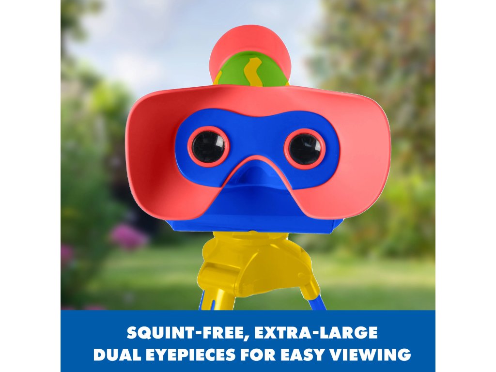 GeoSafari Jr. My First Telescope je dalekohled určený pro malé děti, který umožňuje pozorovat hvězdy, přírodu i okolní svět s 10× přiblížením a s velkými okuláry šitými pro dětské tváře. Konstrukce je pevná, lehká, s jednoduchým zaostřovacím kolečkem a skládacím stativem, takže se snadno přenáší i používá doma i venku. Vhodný pro děti od cca 4 let, tento dalekohled podporuje zájem o STEM oblasti a rozvíjí zvědavost a pozorovací schopnosti.