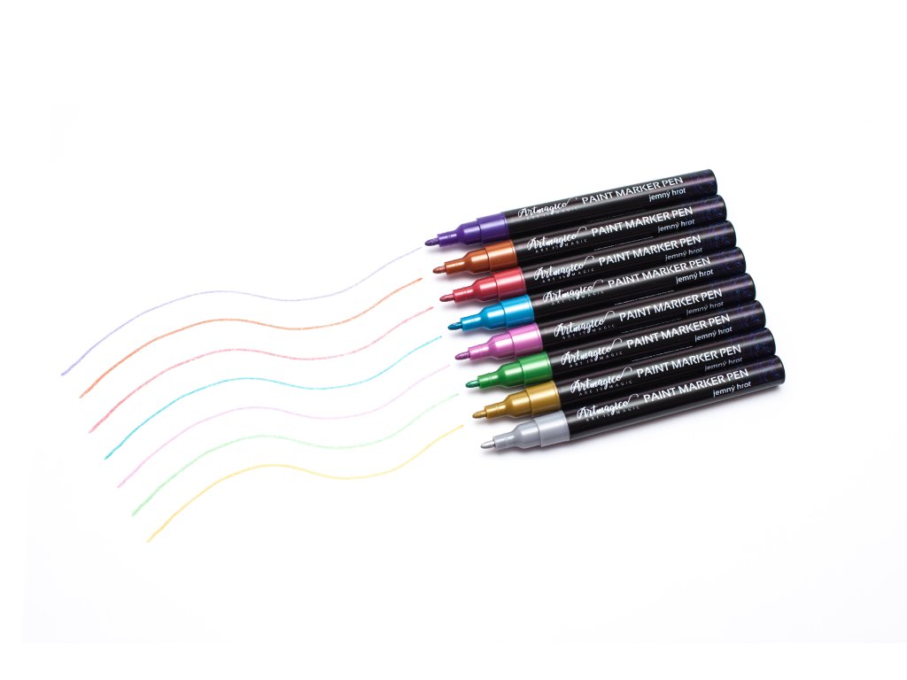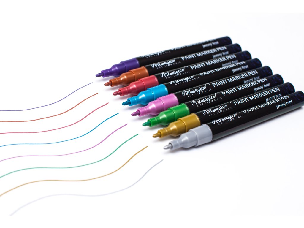 Akrylové popisovače značky Artmagico SMART s jemným hrotem, jsou ideální volbou pro všechny typy malířů. Jejich nádherné metalické odstíny překvapí svými krycími vlastnostmi, které vynikají jak na světlém, tak tmavém povrchu.