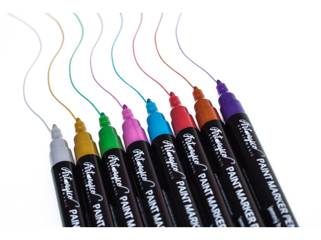 Akrylové popisovače obsahují inovativní inkoust na vodní bázi, jenž využijete na všechny typy povrchů. Fixy Artmagico zajišťují plynulý tok barvy, vysokou krycí schopnost a jasné a konzistentní barvy. V těle fixy najdete akrylovou barvu společně s pojivem, jejichž spojení je zajištěno kuličkou, která při štěrchání zajistí správnou konzistenci.