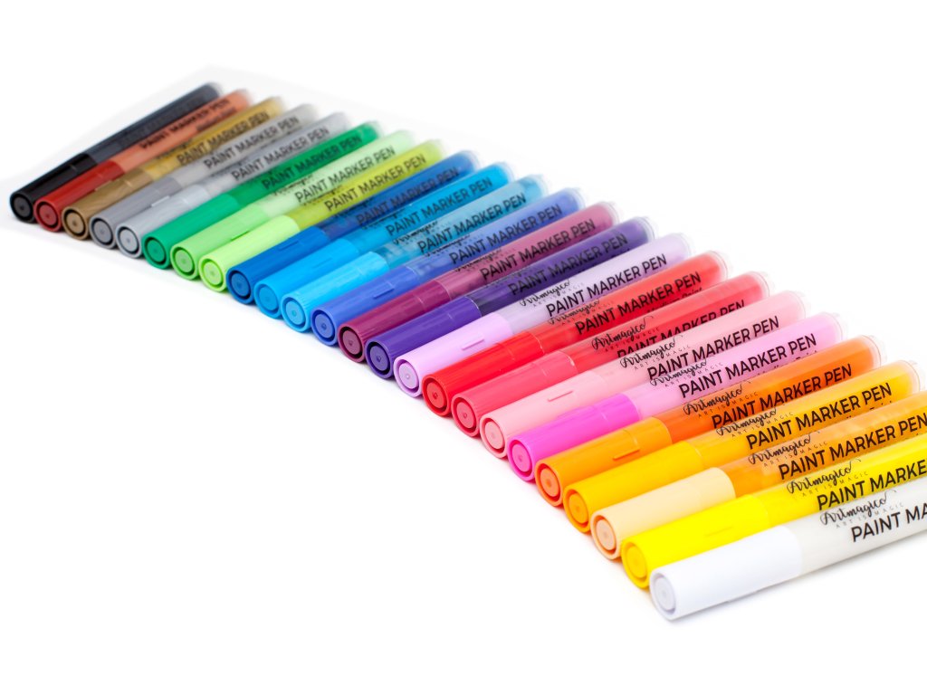 Akrylové popisovače obsahují inovativní inkoust na vodní bázi, jenž využijete na všechny typy povrchů. Fixy Artmagico zajišťují plynulý tok barvy, vysokou krycí schopnost a jasné a konzistentní barvy. V těle fixy najdete akrylovou barvu společně s pojivem, jejichž spojení je zajištěno kuličkou, která při štěrchání zajistí správnou konzistenci.