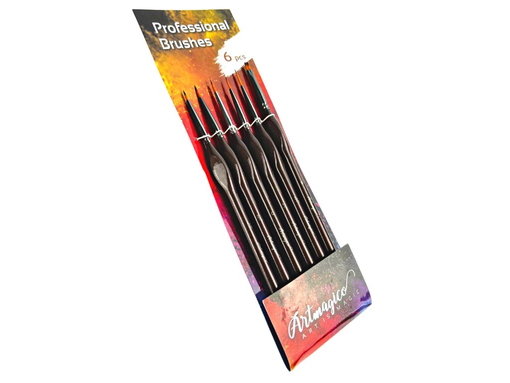 Set of 6 professional-quality synthetic fiber brushes for the most detailed painting with an ergonomically shaped handle for a comfortable grip.