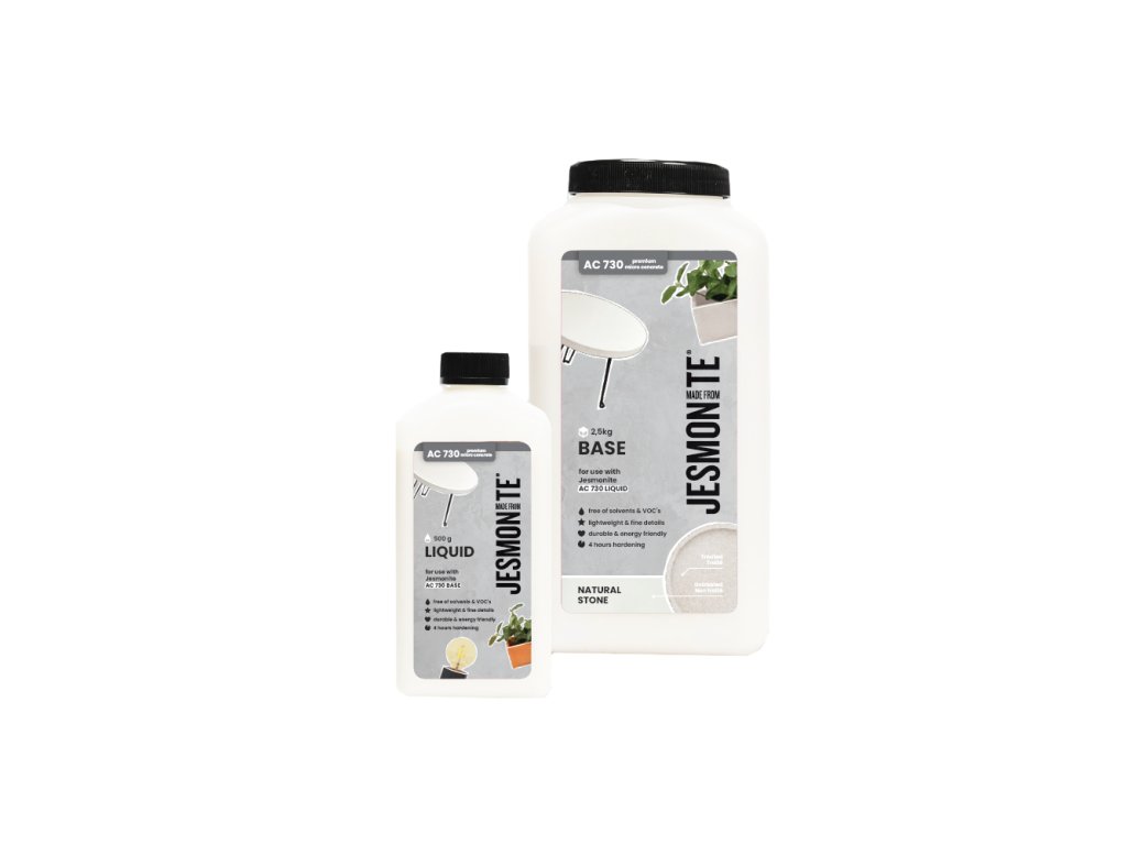 The Jesmonite AC730 Natural Stone kit is a cement-based composite material consisting of two components - liquid and powder. After curing and surface treatment, it perfectly imitates the appearance of natural stone. The kit is the ideal choice for those who want to create products with the natural look of stone with the advantages of the modern composite material Jesmonite.