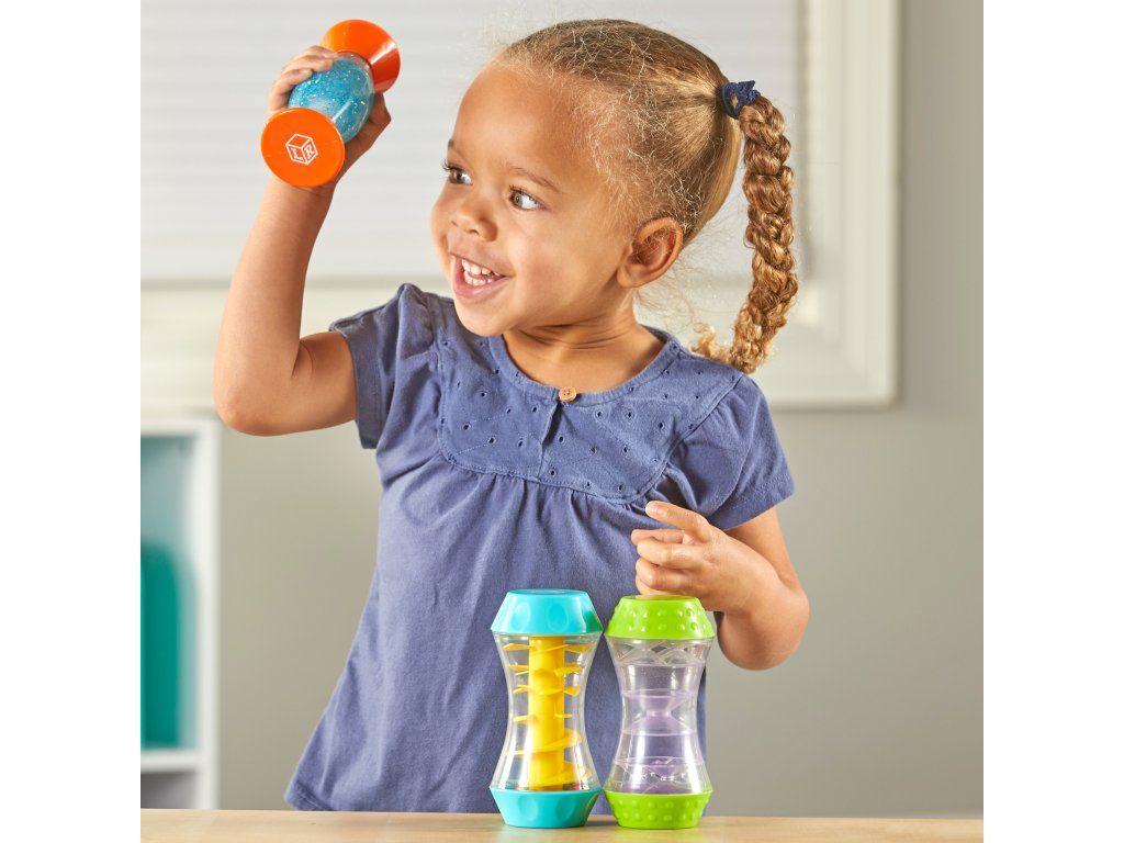 Toto senzorické trio Fidget Tubes od Learning Resources nabízí dětem jedinečnou příležitost k rozvoji jejich základních smyslových dovedností. Každá hračka zapojuje jiný smysl – ať už jde o poslouchání korálků, jak padají do trubičky, sledování víru třpytek, nebo vnímání plynulého pohybu písku, každá hračka rozvíjí zrakové, sluchové a taktilní vnímání.