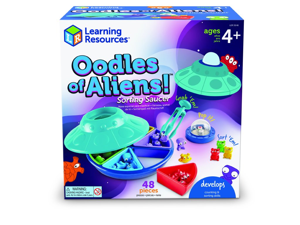 Vítejte na planetě mimozemšťanů! Edukativní hra Oodles of Aliens™ přináší dětem nekonečné možnosti pro třídění podle barev a čísel, vytváření vzorů i rozvoj koordinace ruka-oko. Každý mimozemšťan je měkký a barevný, ideální pro zvedání pomocí speciálních Tri-Grip kleští, které napomáhají správnému úchopu tužky a posilují jemné motorické dovednosti.