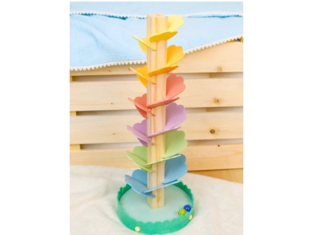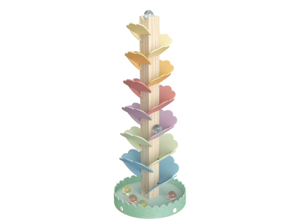 Tato barevná kuličková dráha je navržena tak, aby poskytla nejen zábavu, ale i smyslovou stimulaci. Když dítě pustí kuličku shora, sleduje její svižný pohyb dolů a přitom naslouchá jemnému klapotu, který každá dráha vydává. Tím se přirozeně rozvíjí jeho sluchová a zraková koordinace i jemná motorika.