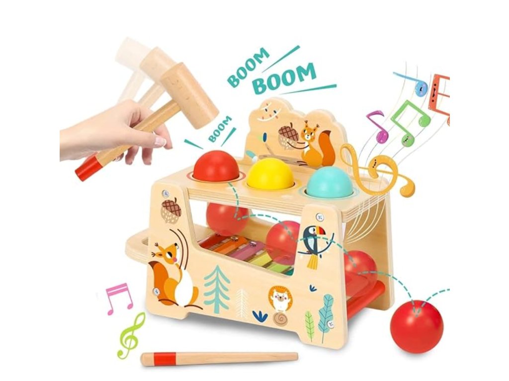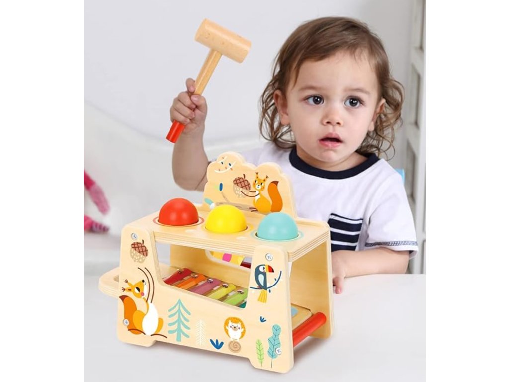 Tato chytrá hračka pomáhá dětem rozvíjet motoriku, koordinaci a přirozený smysl pro rytmus. Zatloukačka je zábavná i poučná – a díky veselým zvířátkům i vizuálně přitažlivá.