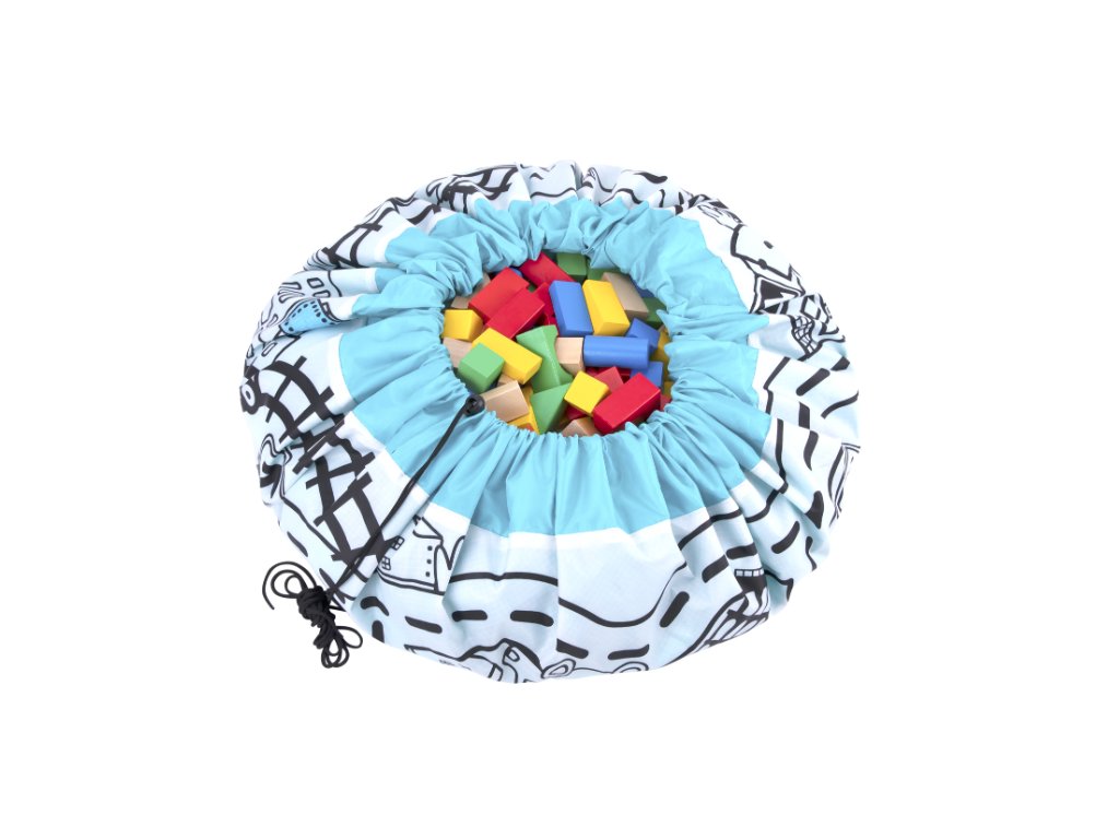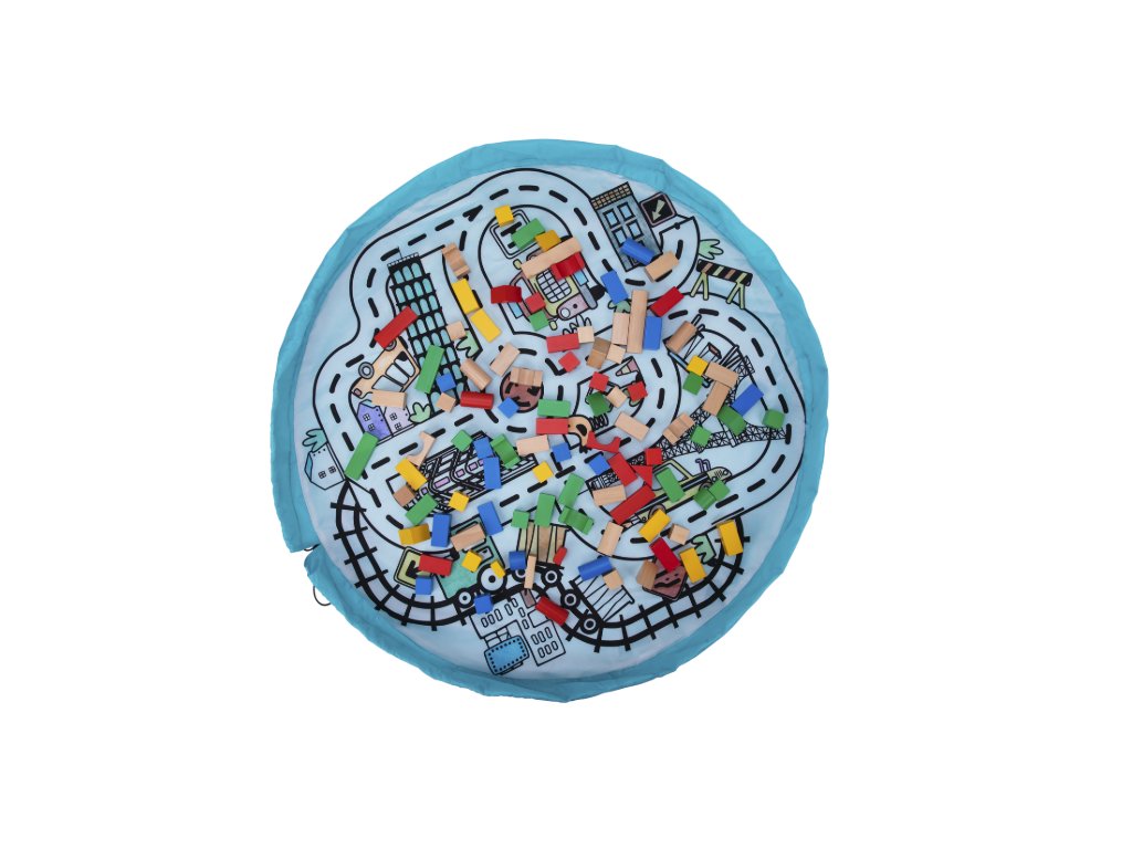 Díky voděodolné tkanině a stahovací šňůrce, která umožňuje snadné sbalení, se podložka stává ideálním řešením pro rodinné výlety nebo každodenní hraní doma. Hračky lze jednoduše uložit do podložky, kterou následně uzavřete a přenesete bez starostí o nepořádek.