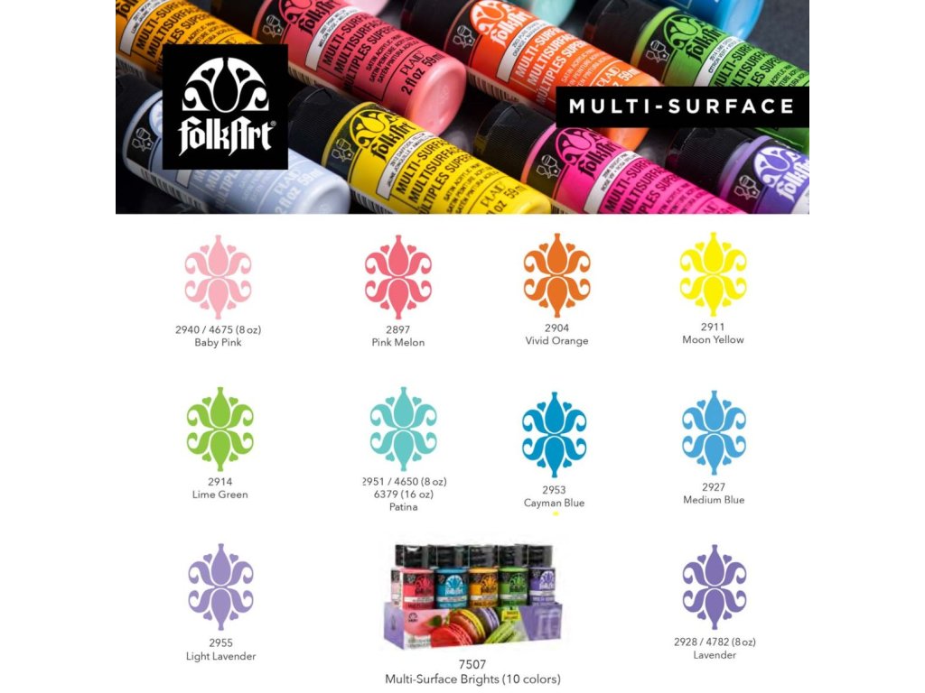FolkArt Brights Multi-Surface Satin sada akrylových barev 10 ks