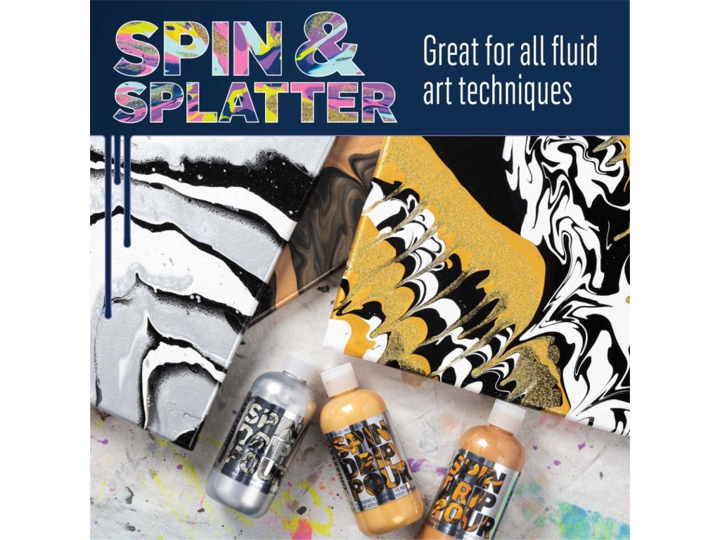 FolkArt Drizzle Premium Mad Metallics je sada, která vám umožní rozšířit své umělecké hranice a přidat do vašich výtvorů zářivý kovový lesk. Tato sada obsahuje tři 138ml lahvičky s předem namíchanými akrylovými metalickými barvami v odstínech Heart of Gold, New Penny a Silver Bank. Díky těmto výrazným kovovým odstínům můžete vytvářet unikátní a oslnivé mramorové efekty.