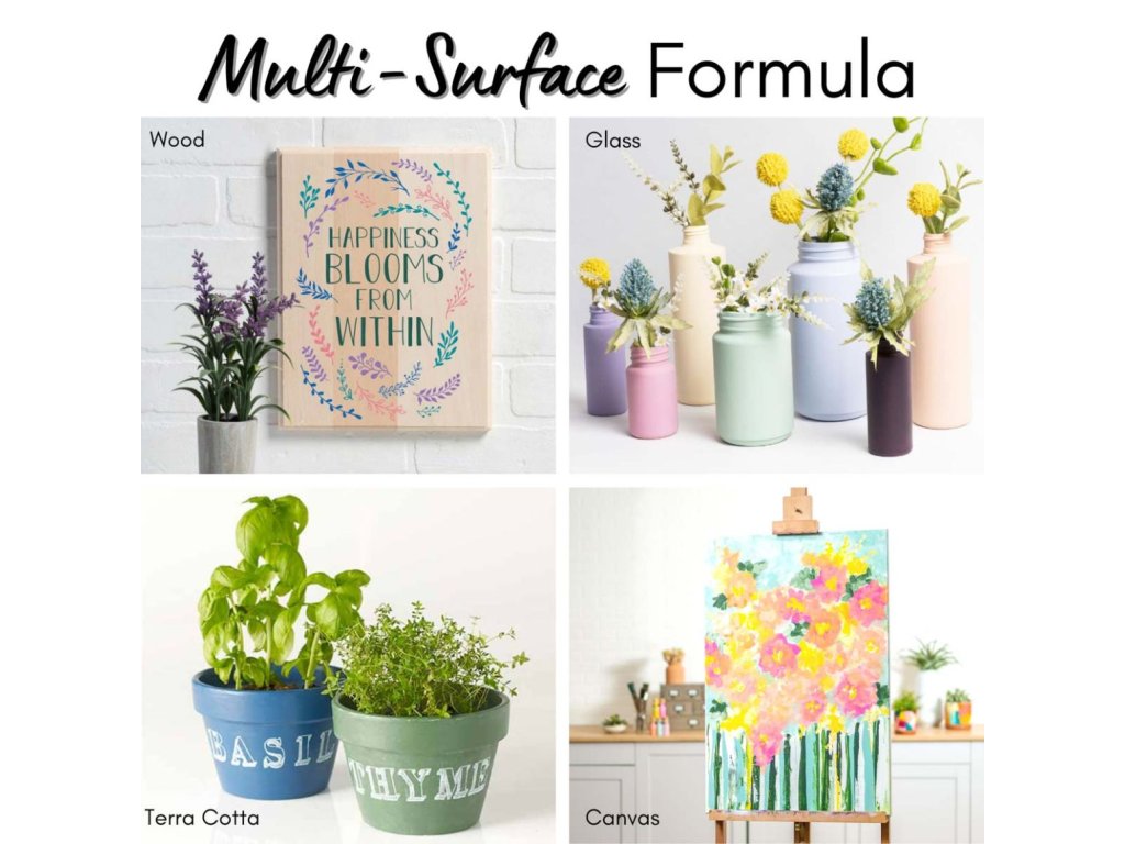 FolkArt Multi-Surface Acrylic Paint lze použít na široké škále povrchů, včetně dřeva, terakoty, plátna, skla, textilu, keramiky, plastu a kovu, což ji činí ideální volbou pro jakýkoli kreativní projekt.