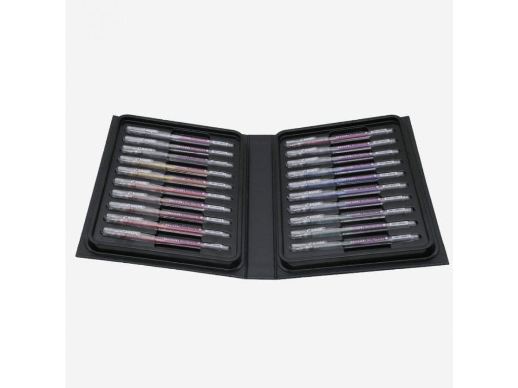 Gelová pera KARIN Déco Gel Star Sparks jsou navržena pro všechny, kteří milují kreativní projekty, zdobení a kaligrafii. Tato sada obsahuje 20 různých barev, které přinášejí intenzivní a zářivé odstíny, ideální pro přidání živých akcentů do vašich uměleckých děl. S plynulým tokem gelového inkoustu a precizním hrotem tato pera umožňují hladké a rovnoměrné psaní i zdobení na různých površích.