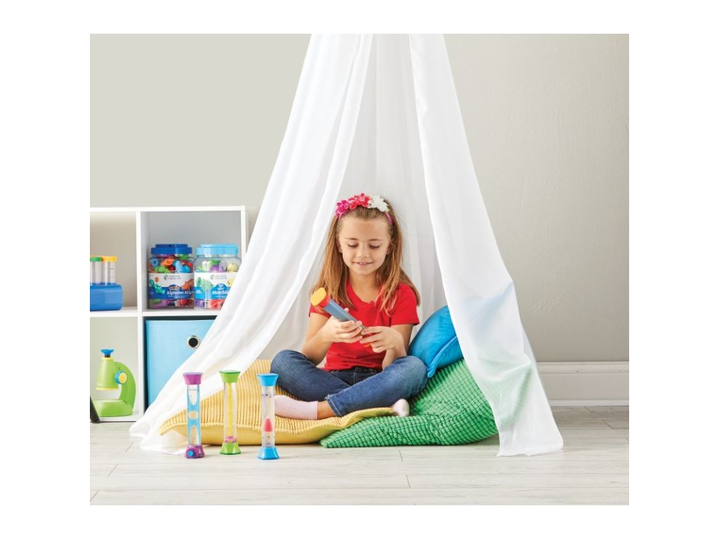 Sada je lehká, přenosná a ideální do školy, školky nebo domácího koutku pro zklidnění.