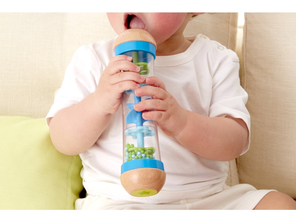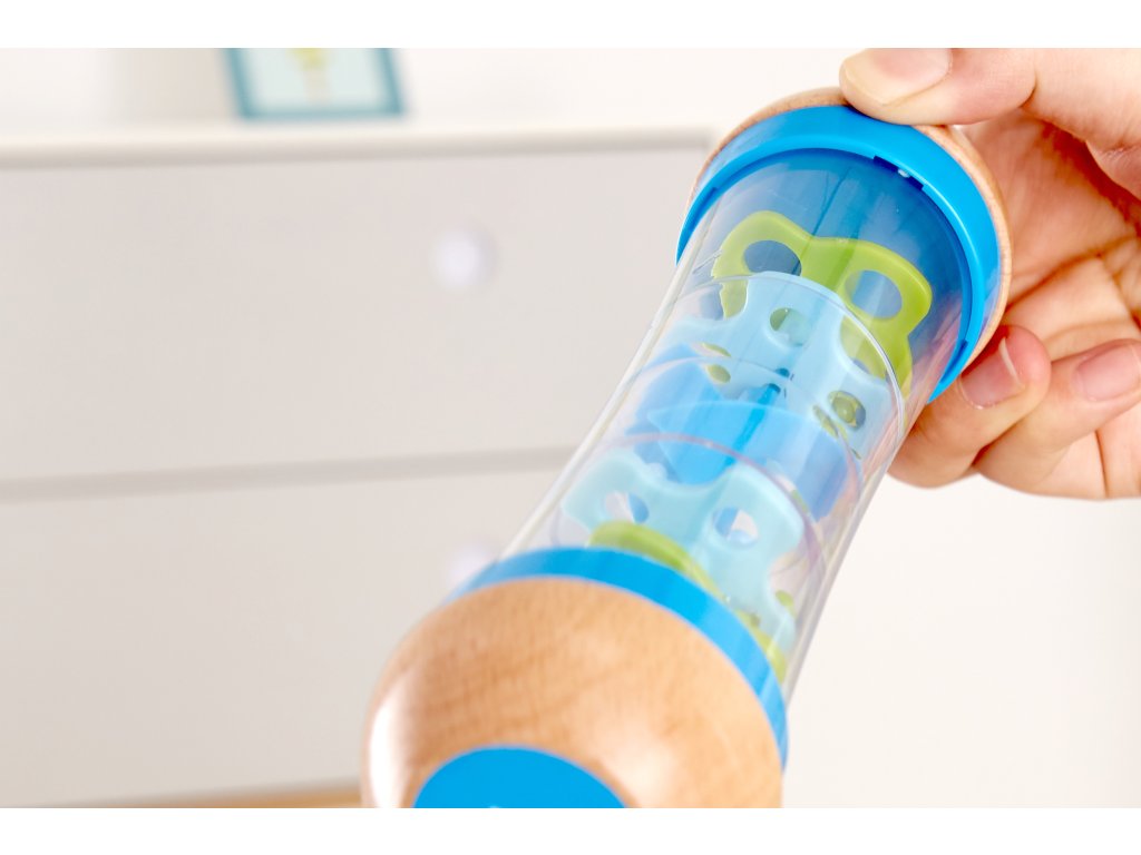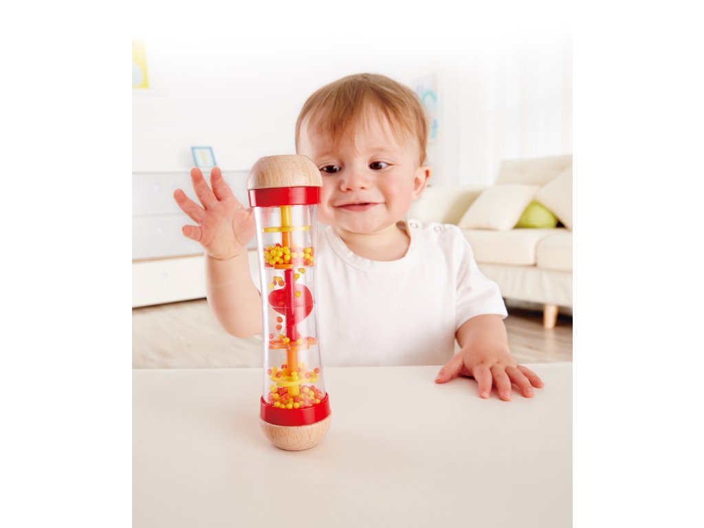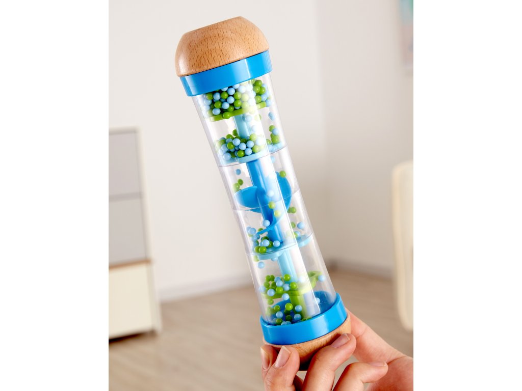 Oblíbená smyslová hračka ve tvaru válce simuluje zvuk deště a zaujme děti svým jemným chrastěním i barvami. Rozvíjí sluch, zrak i jemnou motoriku. Ideální pro batolata od 12 měsíců.