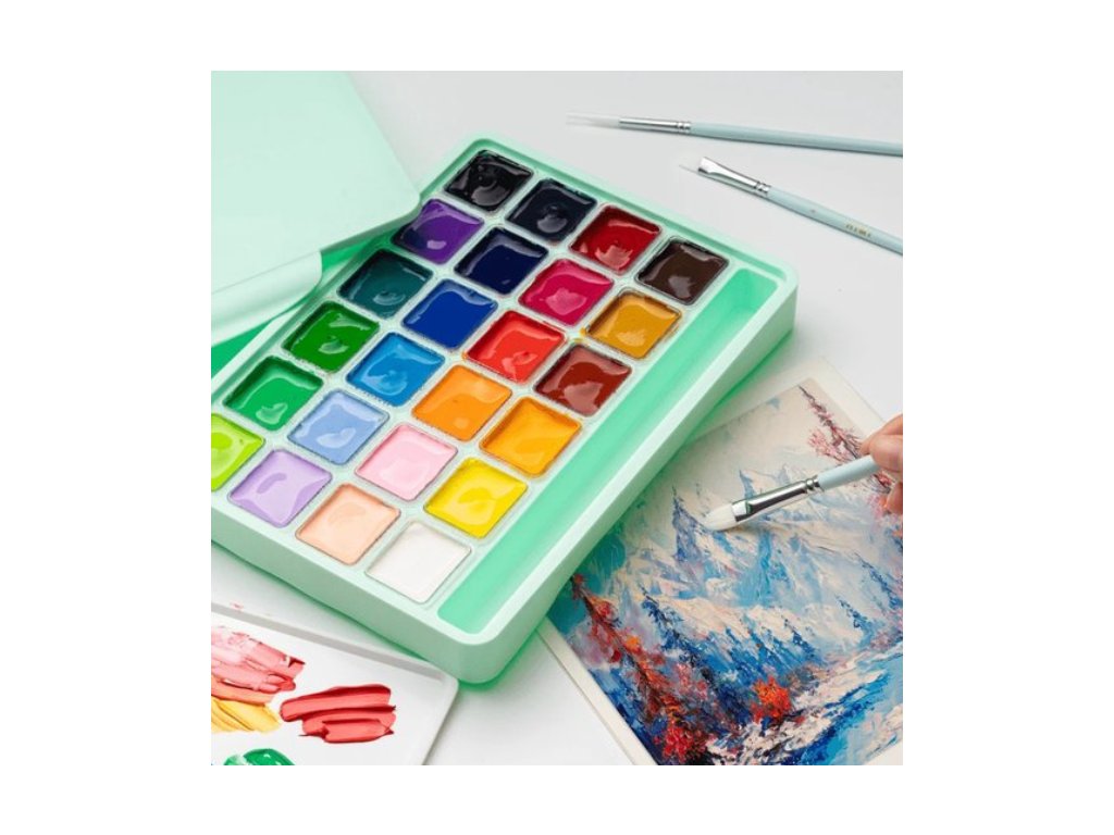 HIMI kvašové barvy - Jelly Cup Gouache Set - 24 Colours + 3 štětce(Green Case Edition)