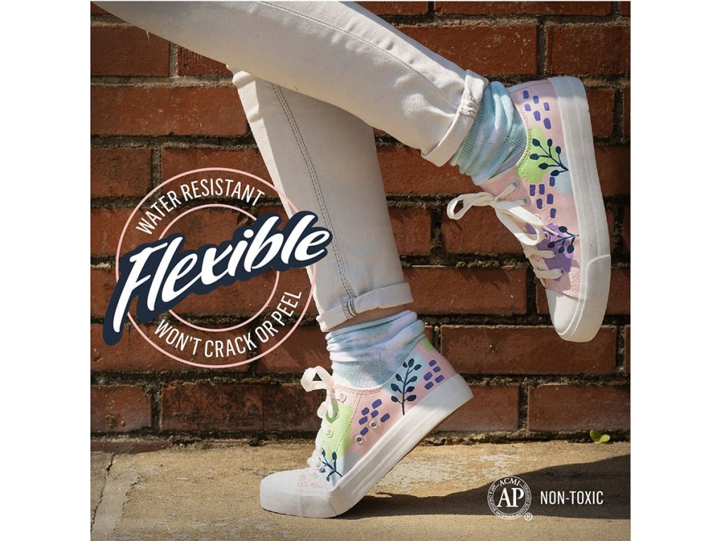 - Netoxické složení: Bezpečná, na vodní bázi, vhodná pro kreativní úpravy obuvi a módních doplňků.