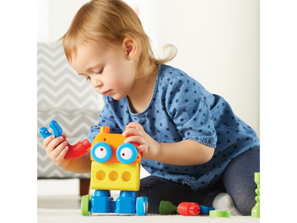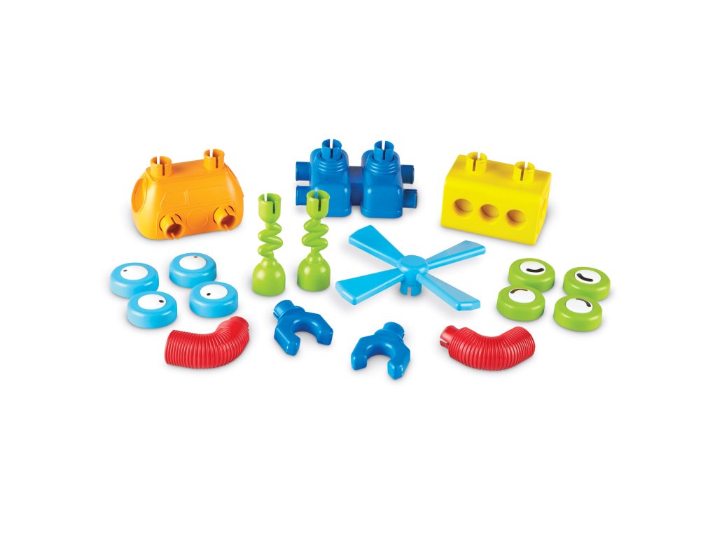 Podpořte dětskou fantazii a jemnou motoriku se stavebnicí 1-2-3 Build It!™ Továrna na roboty od Learning Resources. Děti si mohou postavit vlastní roboty s otáčecími, barevnými dílky a rozvíjet přitom první STEM dovednosti hravou formou.