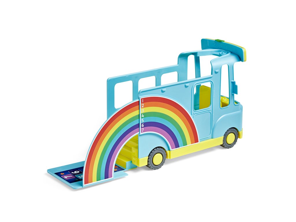 Autobus hraje 12 písniček a zvuků z TV série. Děti mohou pomocí slideru vybrat cílové místo, a díky sklápěcímu zadnímu panelu vidí duhu – zároveň jim autobus vizuálně ukazuje barvy v řadě, a na druhé straně také ilustrace čísel One až Seven. Hra zprostředkovává základy počítání, sledování sekvencí a zábavně motivuje k interaktivnímu učení. Součástí balení je také figurka Seven a arch samolepek pro dekoraci.