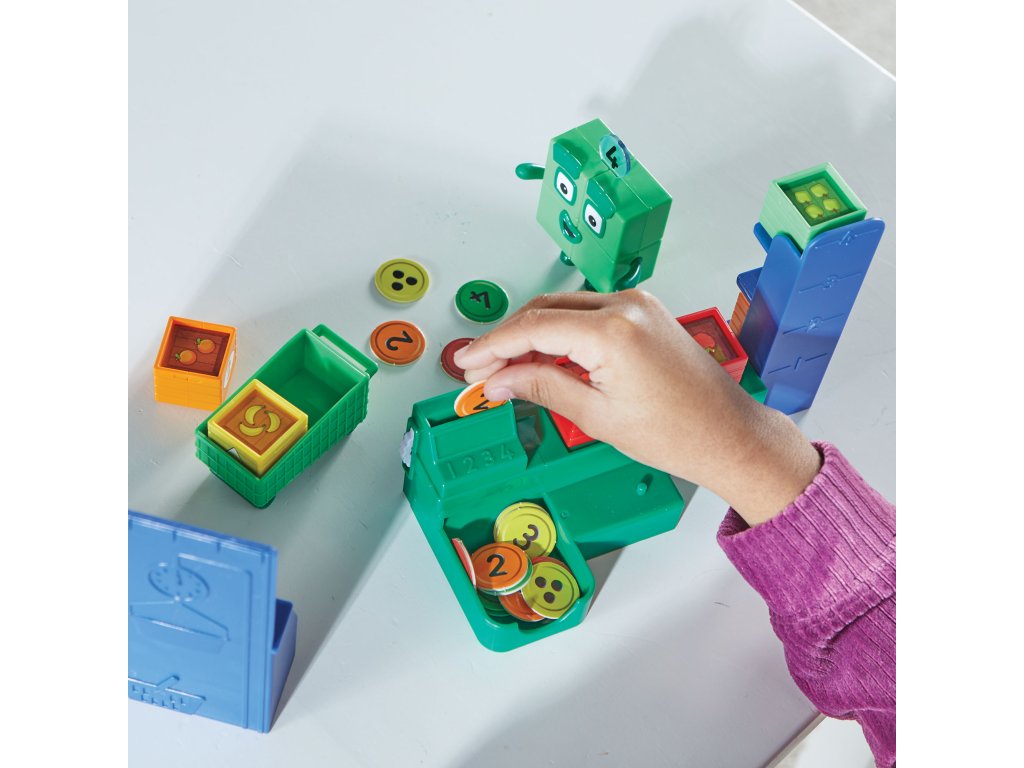Learning Resources figurková sada Numberblocks® Add It Up Mini Market přináší živou a kreativní výuku matematiky skrze hru v „mini-marketu“. Děti si přitom osvojí základní aritmetické dovednosti, peněžní gramotnost a logické rozhodování.