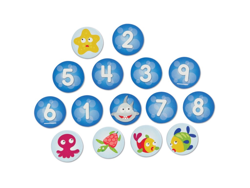 90 karet s čísly od 1 do 9 (ilustrované z jedné strany motivem mořských živočichů)