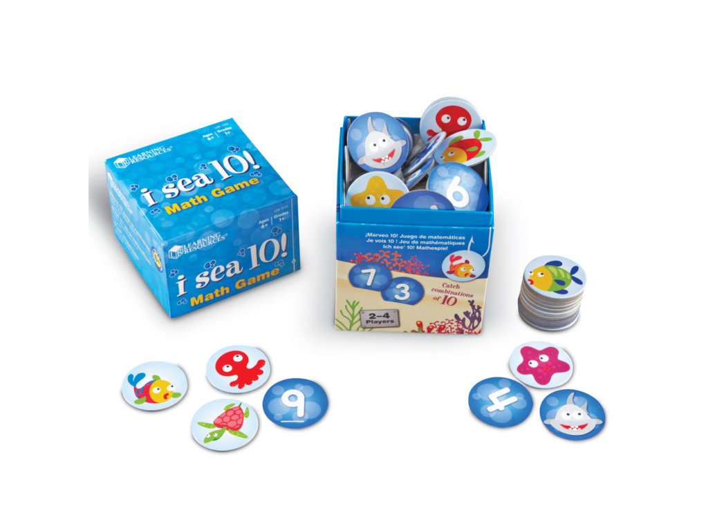 Matematická hra „Vidím 10!“ (I Sea 10!) je zábavný způsob, jak si děti mohou procvičovat základní početní dovednosti — zejména kombinační sčítání. Hra je tematicky laděná do stylu mořského světa se žralokem, který přidává zvrat do každého tahu.