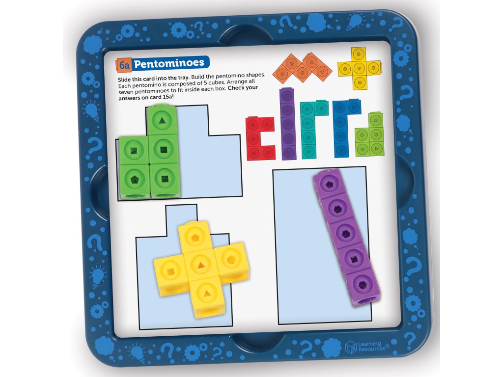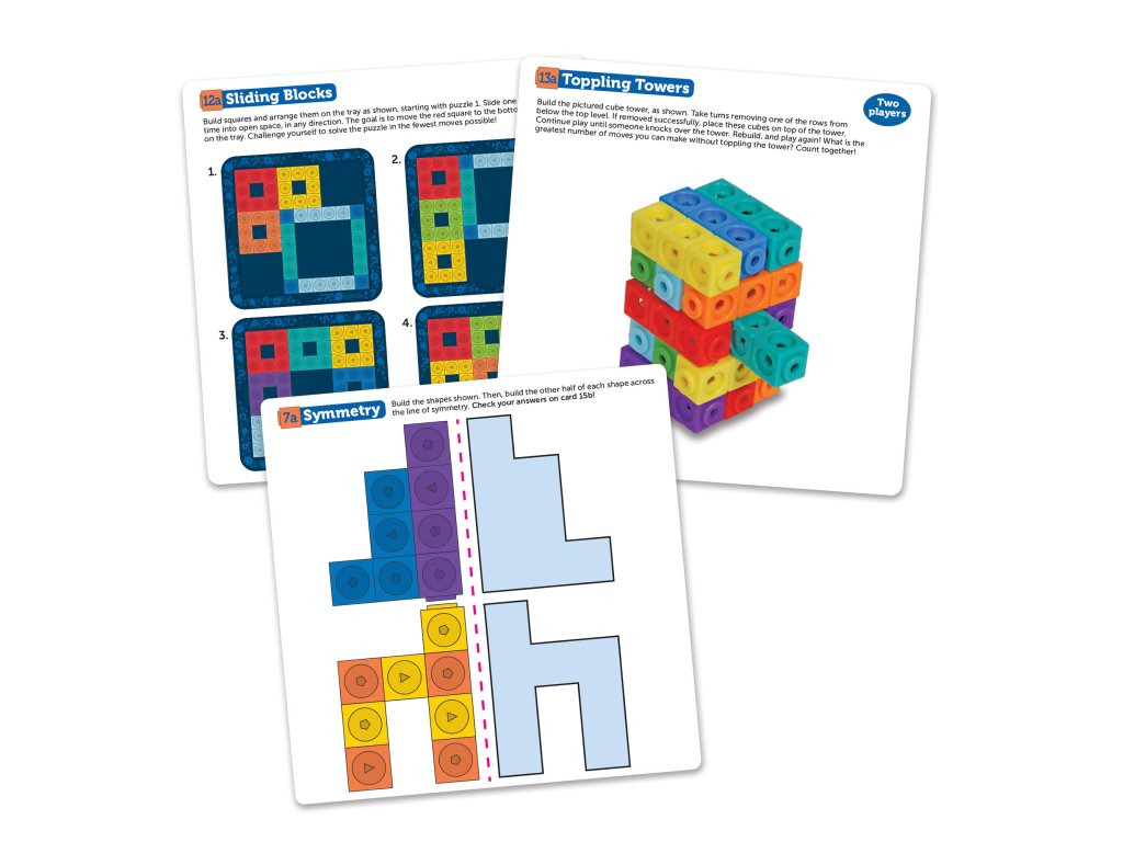 Learning Resources MathLink® Cubes Brain Puzzle Challenge nabízí více než 40 originálních hlavolamů a stavebních aktivit, které děti pobízejí k řešení problémů – ať už hrají samostatně, nebo ve dvojici.
