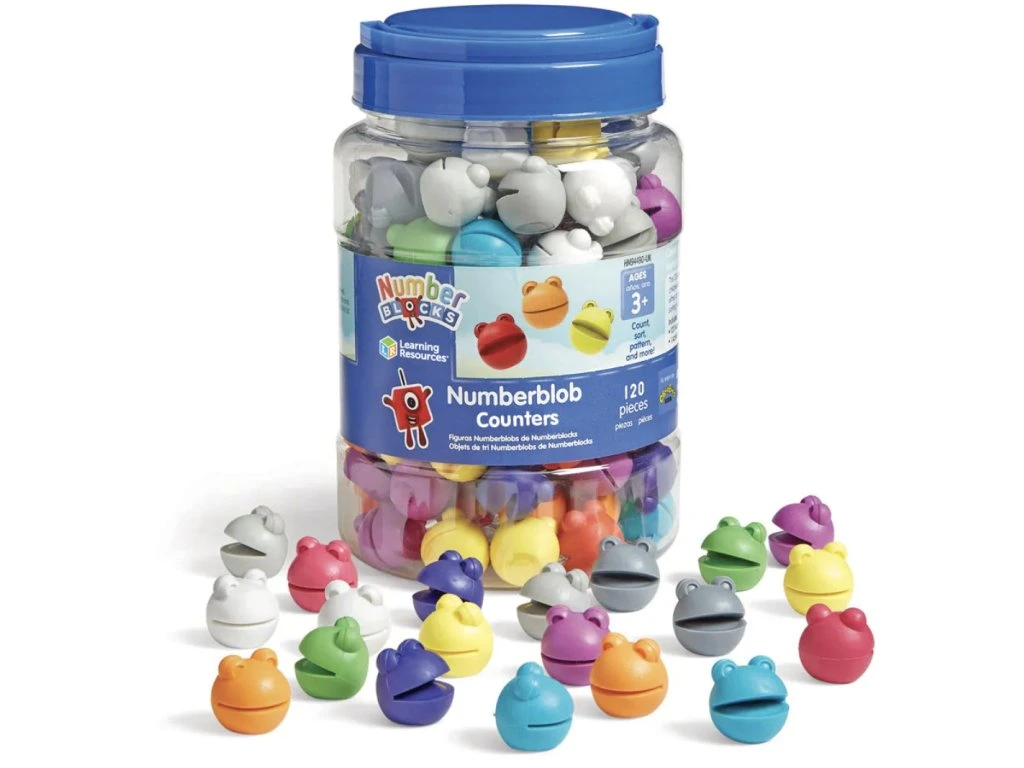Počítací sada Numberblob představuje vysoce efektivní most mezi audiovizuálním vnímáním (populární seriál Numberblocks®) a konkrétní manipulativní činností v matematice. Díky nadstandardnímu počtu 120 prvků a 12 barevným odstínům je ideální pro demonstraci desítkové soustavy, skupinové sčítání i pokročilé třídění podle více kritérií (barva, výraz tváře, geometrický tvar).