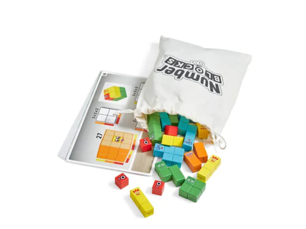 - Obsah balení: 28 dřevěných bloků s motivy Numberblocks, 10 oboustranně potištěných aktivitních karet, Activity Guide a úložná taška.