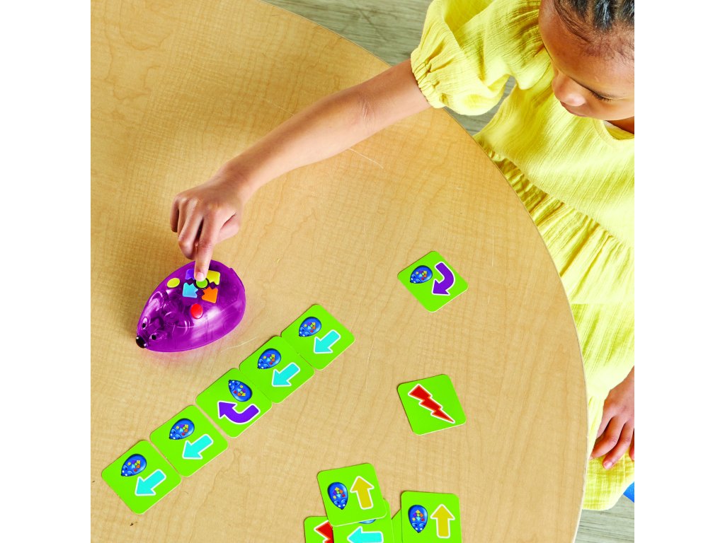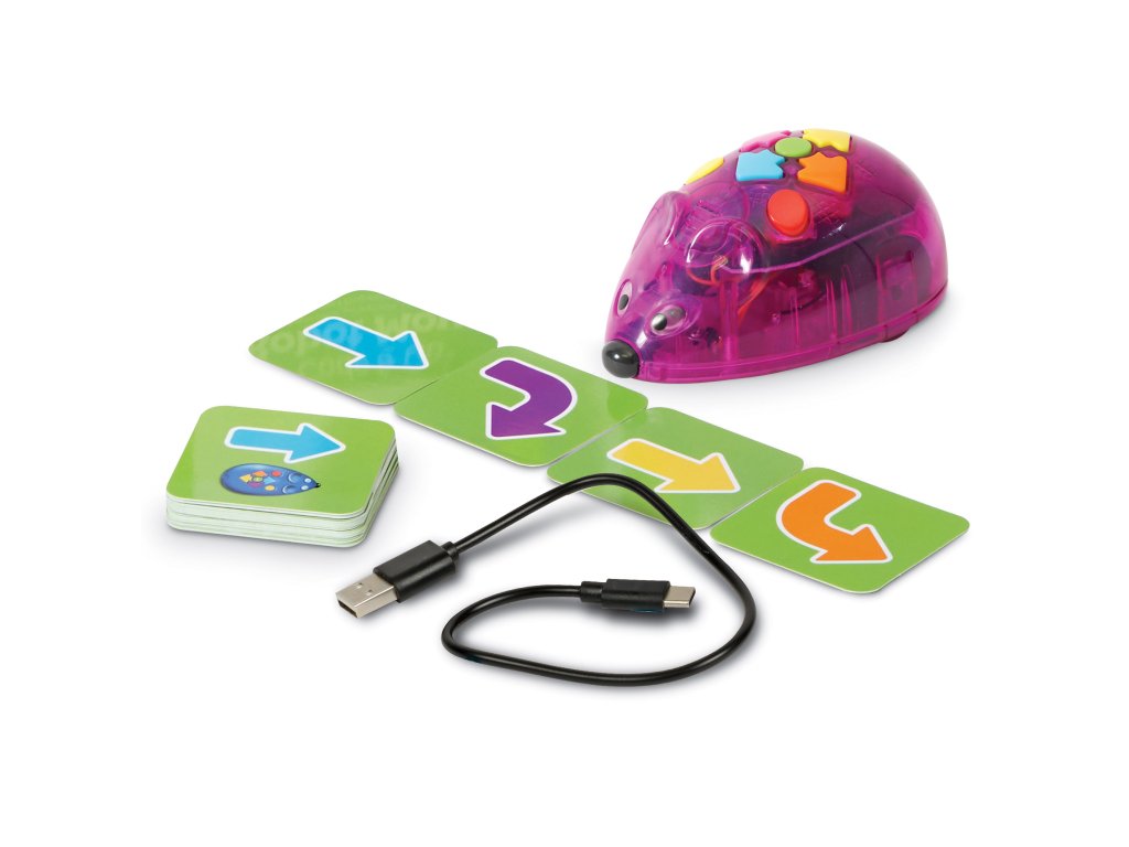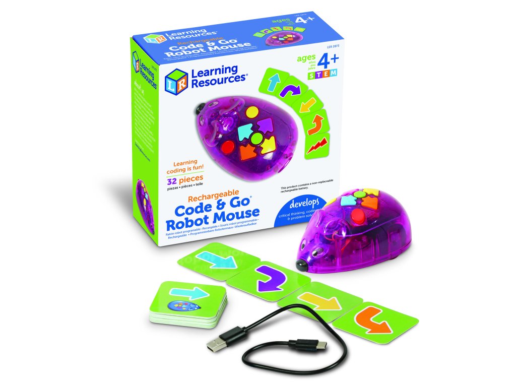Learning Resources Sada aktivit s myší Code & Go® – dobíjecí přináší bezdrátový a udržitelný zážitek z programování – v balení najdete programovatelnou robotickou myš s osvětlením, zvukovými efekty, dvěma rychlostmi a intuitivními tlačítky nadupanými pro kódování.