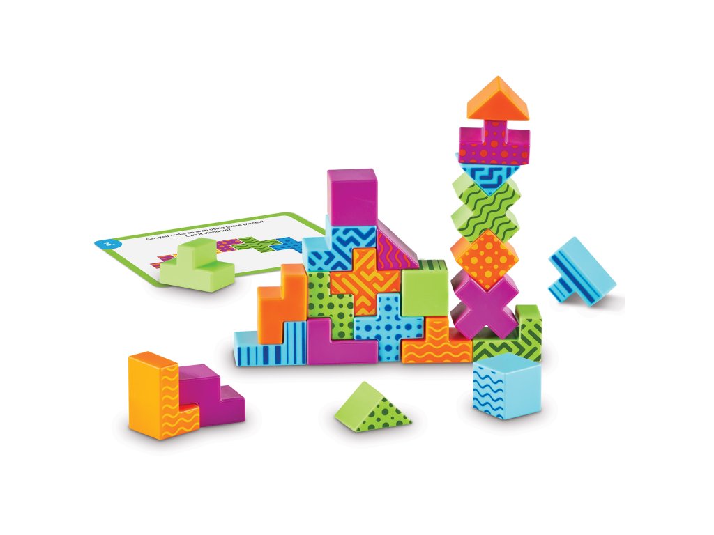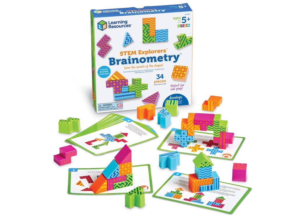 Learning Resources STEM Explorers™ Brainometrie™ je originální logická hra, která dětem nabízí více než 30 různých výzev v podobě 3D skládání. Barevné dílky je potřeba sestavit podle zadání na kartách, a tím děti procvičují prostorovou představivost, logické uvažování a schopnost řešit problémy krok za krokem.