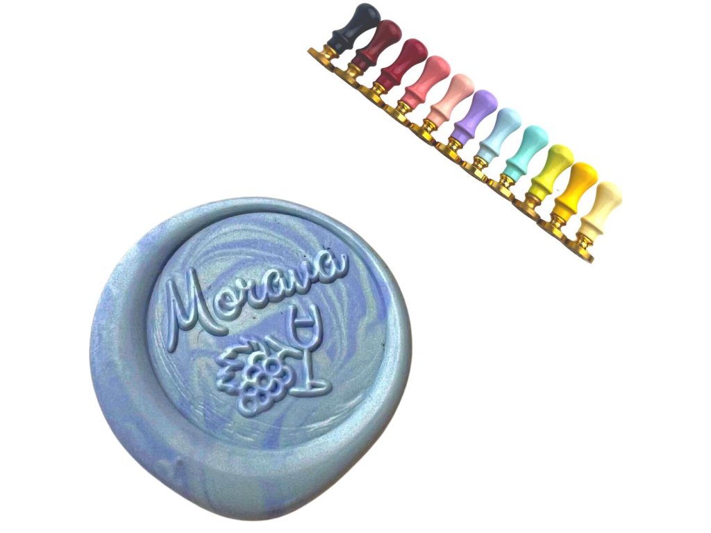 Pečetidlo s nápisem Morava potěší každého vinaře z Moravy. Pečeť ozdobí každou obálku a dodá ji nádech elegance. Objevte kouzlo pečetění a využijte pečetě jako ozdobu na cokoliv od obálek, svatebních oznámení, ozdob vánočních dárků, ale i spousty dalšího.