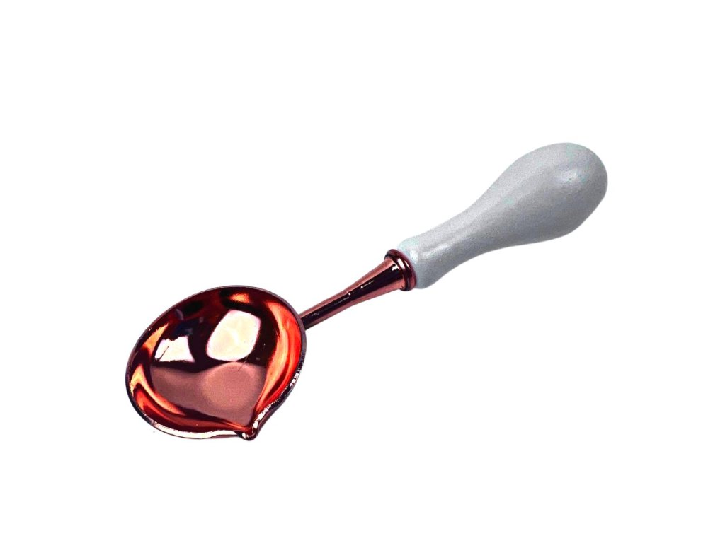 Pečetní lžička s dřevěnou rukojetí určená k tavení pečetního vosku. Vložte do lžičky přiměřené množství pečetního vosku a zahřejte nad ohněm, poté rozehřátý vosk lžičkou nalijte na požadované místo a přiložte pečeť. Při manipulaci se lžičkou po dokončení pečetění dbejte zvýšené opatrnosti, kovová část lžičky bude rozpálená. Krásné barevné provedení lžičky navodí příjemný pocit při této uklidňující činnosti, kterou si zamilujete.
