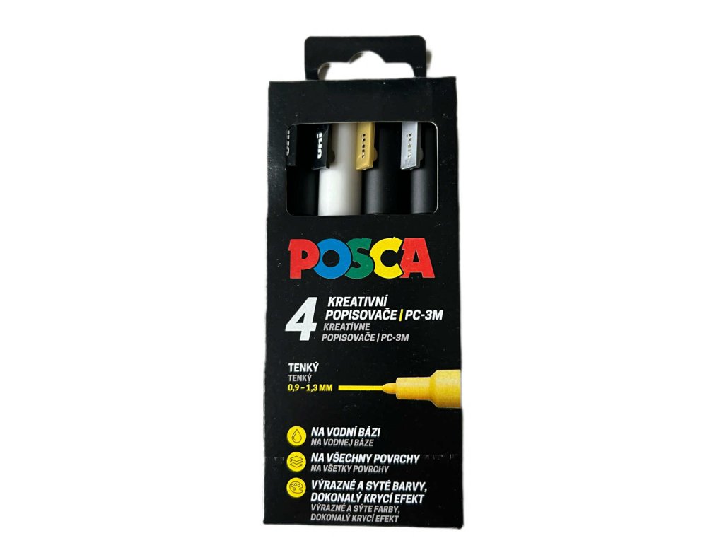 POSCA akrylový popisovač PC-3M 4 ks - bílá, zlatá, černá, stříbrná