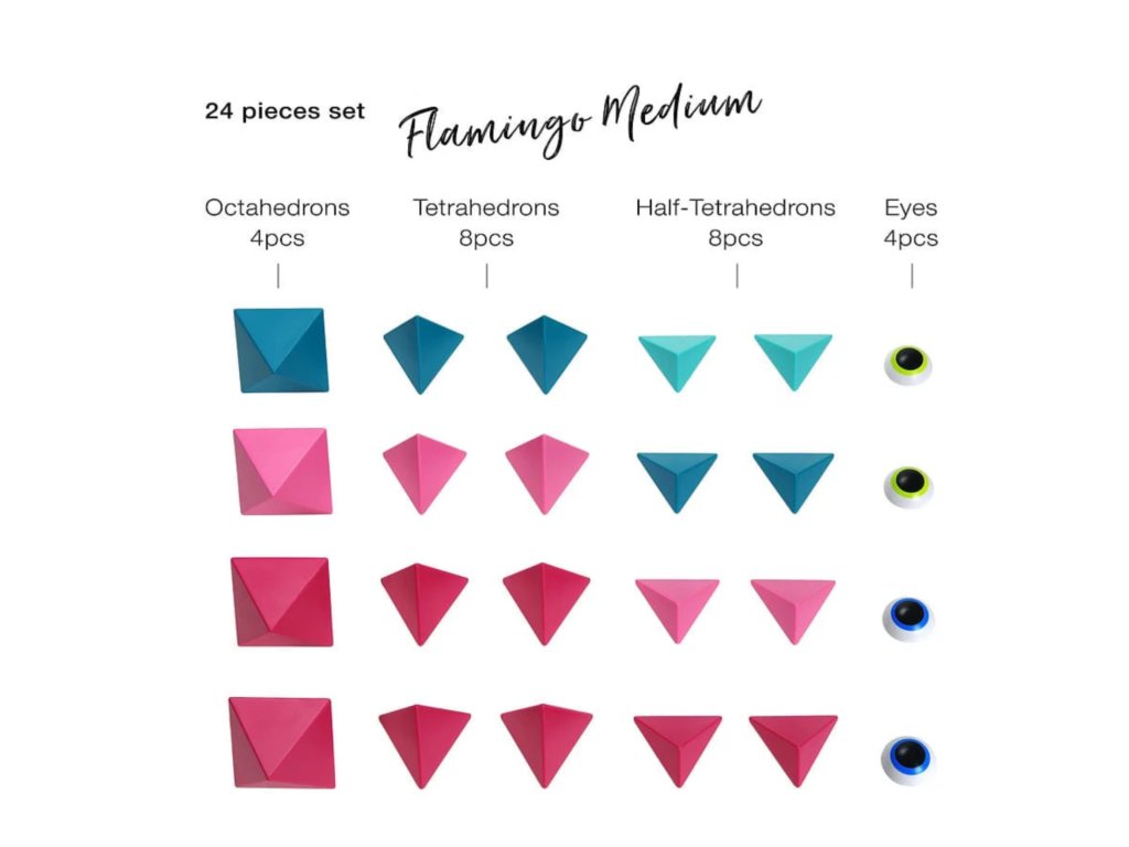 Trido Flamingo Medium přináší ideální kombinaci zábavy a vzdělávání. Děti mohou díky magnetickému spojení jednoduše vytvářet prostorové stavby bez nutnosti složité manipulace. Sada obsahuje barevné tvary jako jsou trojúhelníky, čtverce nebo šestiúhelníky, které spolu drží pomocí vnitřních magnetů.