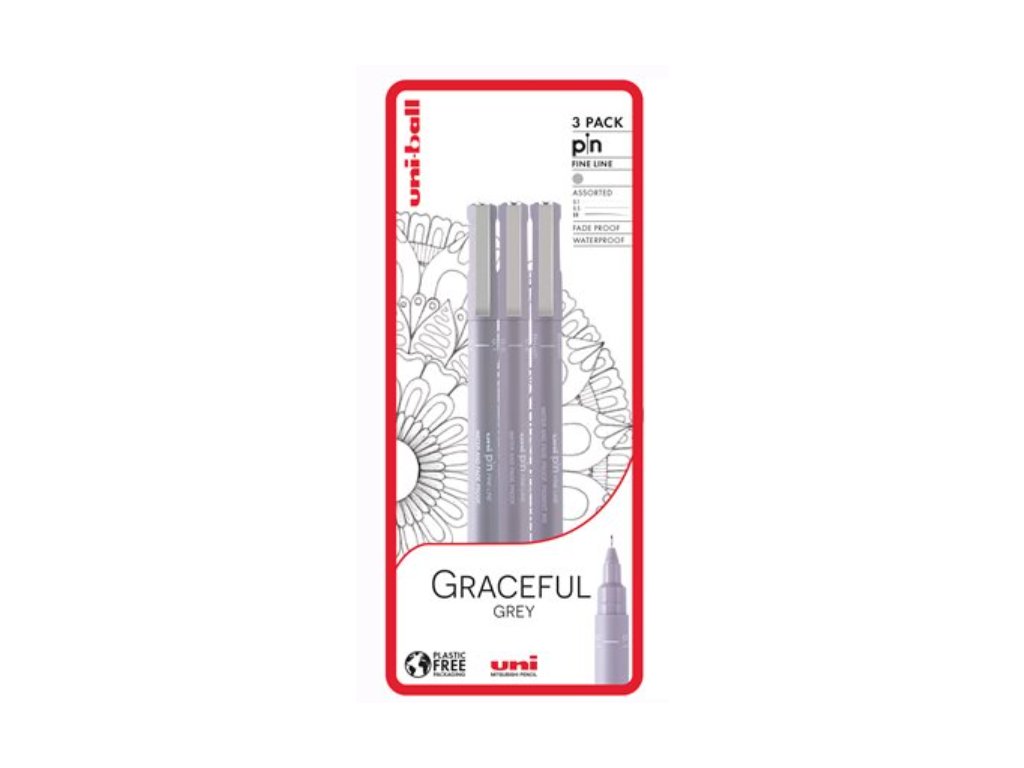 Objevte preciznost s UNI PIN Graceful Grey sadou 3ks linerů! Tato sada obsahuje kvalitní linery ve třech různých šířkách (0,1 mm, 0,3 mm a 0,5 mm), ideální pro kresbu a technické kreslení. S voděodolným a rychleschnoucím inkoustem v elegantní šedé barvě budete mít vždy jistotu ostrých a čistých linií. Perfektní pro umělce, designéry i techniky!